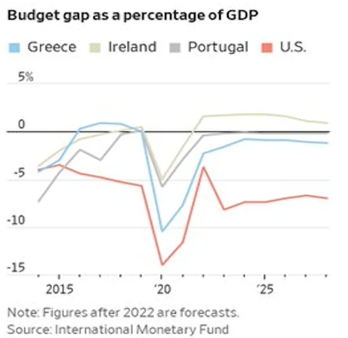 Desde 2015, el déficit publico anual en USA es superior al de Portugal, Grecia o Irlanda.