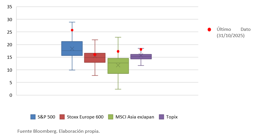 Pero ¿y con respecto al resto de bolsas internaciones, está caro o barato? ¿y Vs otras burbujas históricas?