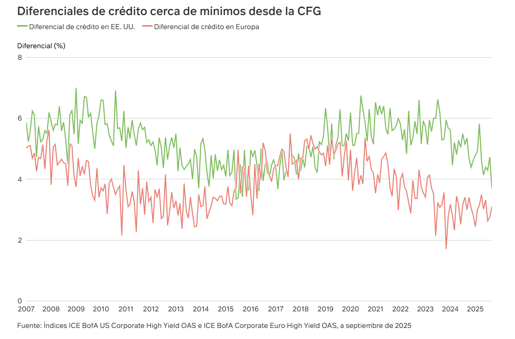 Los diferenciales de crédito se han estrechado hasta sus niveles más bajos desde la crisis financiera global (CFG). Esta compresión de las rentabilidades al vencimiento (TIR) de la deuda corporativa ha reducido de manera significativa las rentabilidades ajustadas al riesgo de estos instrumentos, llevando a algunas aseguradoras a explorar opciones de inversión menos convencionales.