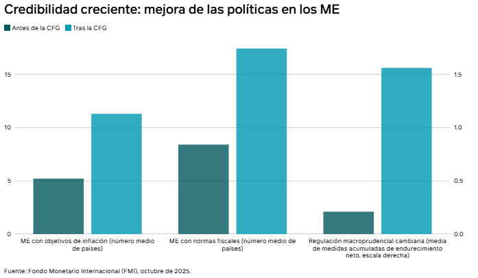 Además, el FMI proyecta que los gobiernos de ME endurecerán su política fiscal en 2026, mientras que en los MD se prevé un deterioro de las balanzas fiscales.
