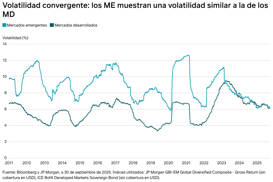 Hoy en día, los ME experimentan niveles de volatilidad similares a los de los MD, gracias sobre todo a marcos monetarios y fiscales mejorados, a una mayor flexibilidad cambiaria y a perfiles de deuda más sólidos.