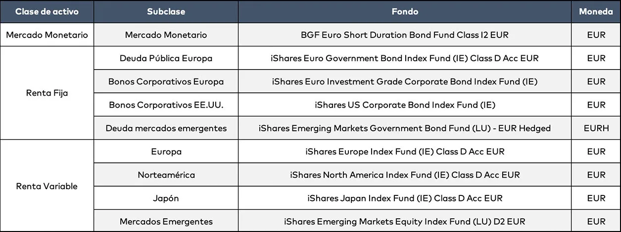 Los fondos de inversión utilizados son: