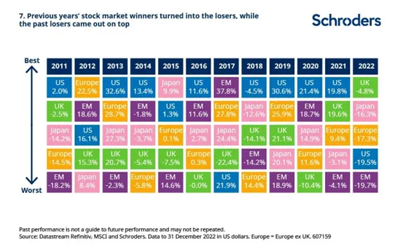 7. Los ganadores bursátiles de años anteriores se convirtieron en perdedores, mientras que los perdedores del pasado salieron ganando