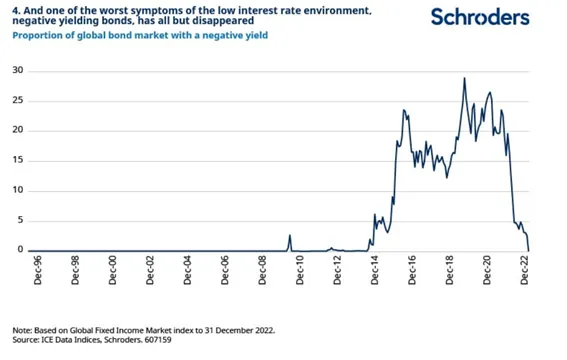 4. Y uno de los peores síntomas del entorno de bajos tipos de interés, los bonos con rendimiento negativo, prácticamente han desaparecido