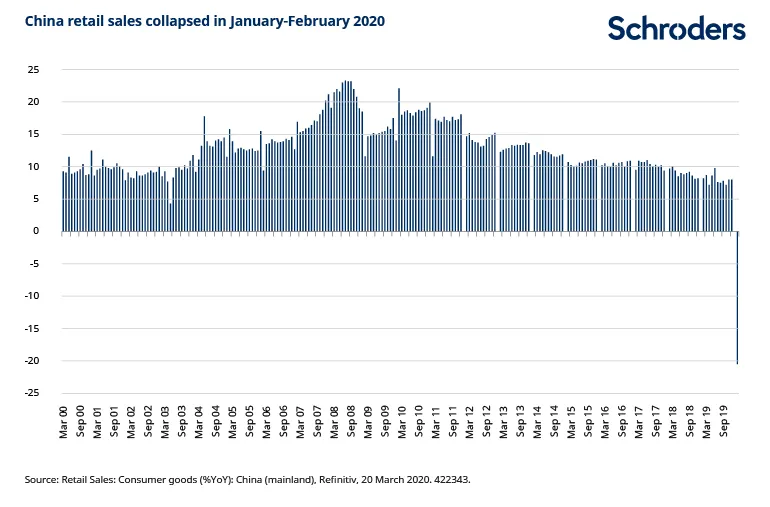 “Miremos el dato que miremos de la economía china, comprobaremos que hay descensos de hasta dos cifras. El consumo se ha visto especialmente afectado. En general, las ventas online se han mantenido más estables que las de al por menor, pese a que han descendido un 3,3% anual. No obstante, esto sigue suponiendo una ralentización significativa, debido al crecimiento de doble dígito que se registró en 2019. Por tanto, y aunque se espera que las ventas online sean mayores que las brick (servicio que permite realizar compras digitales, para posteriormente recoger los pedidos en punto de venta), el coronavirus está planteando serios problemas al potente sector del comercio electrónico en China”, ha explicado Craig Botham, economista de Mercados Emergentes de Schroders.