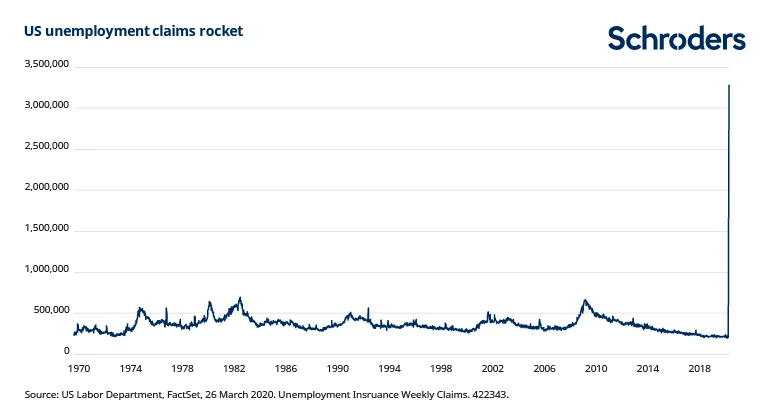 En Estados Unidos, el impacto de las restricciones para frenar la propagación del coronavirus se está empezando a notar en los datos macroeconómicos. De hecho, los datos publicados por el departamento de Empleo de EE.UU. la semana del 21 de marzo mostraron que las solicitudes de subsidio por desempleo aumentaron a 3,3 millones. Sin duda, la cifra más elevada desde que existen registros, que no tiene nada que ver con los máximos alcanzados durante otros periodos.
