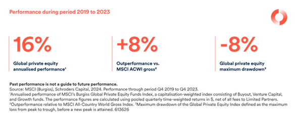 Ante la alta correlación de los mercados públicos, los inversores buscan alternativas de rentabilidad y diversificación en los mercados privados. Hemos realizado un análisis amplio del último cuarto de siglo y, en él, hemos podido comprobar que durante las cinco grandes crisis financieras que se produjeron - la crisis de las puntocom, la crisis financiera mundial, la crisis de la zona euro, la pandemia de COVID-19 y el retorno de la inflación- el private equity superó a los mercados cotizados. De hecho, entre el último trimestre de 2019 y el último de 2023, el private equity global mejoró un 16% la rentabilidad anualizada, muy por encima de otros activos.