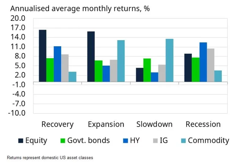 Los períodos de desaceleración son históricamente la única fase en la que los bonos soberanos superan a las acciones.