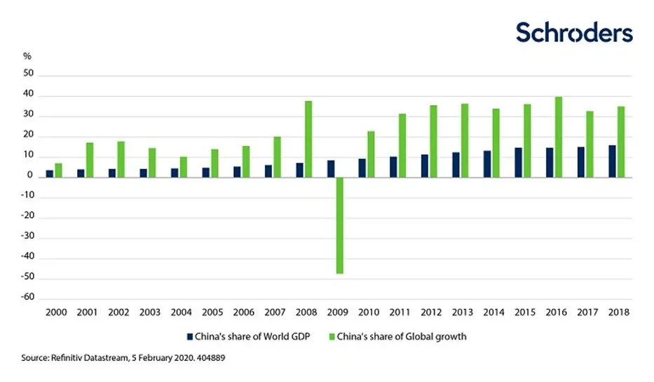 El lugar de China en la economía mundial ha cambiado drásticamente desde el brote de SARS en 2002. Entonces, China representaba sólo el 4,2% de la economía mundial y contribuyó un 18% al crecimiento del PIB mundial. En 2018, su participación en el PIB mundial había aumentado hasta el 15,8%, y el 35% del crecimiento mundial procedía de China. Por lo tanto, una actividad económica más débil en China tendrá un impacto proporcionalmente mayor en el crecimiento mundial actual.