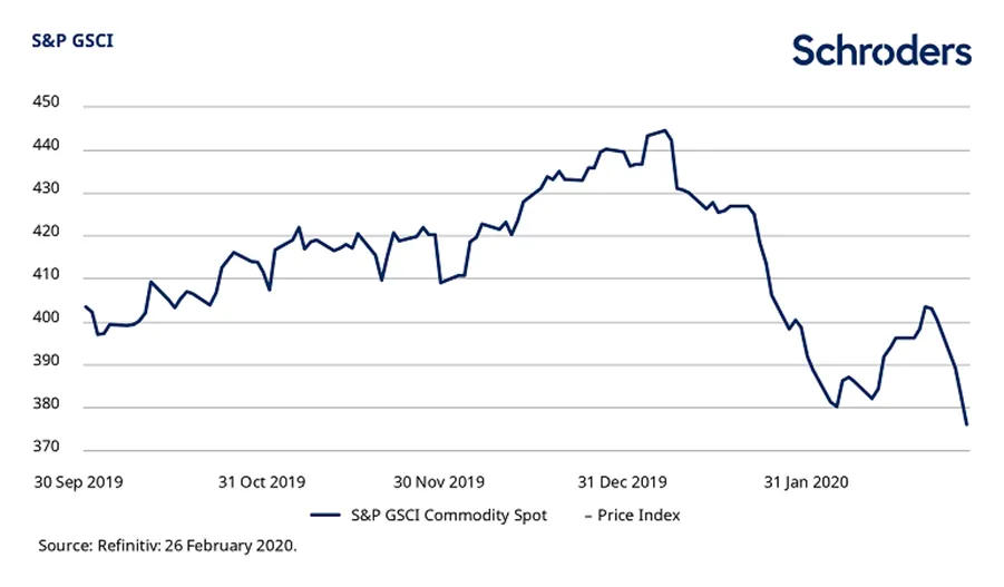 Los precios de las materias primas también han sufrido un impacto desproporcionado. China es el mayor consumidor de muchas materias primas, en particular de metales para su uso industrial. En consecuencia, las repercusiones en los precios han sido importantes, como lo ilustra el índice de materias primas S&P GSCI.