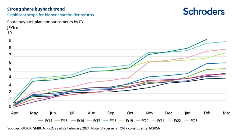 Un factor importante es la campaña lanzada el año pasado por la Bolsa de Tokio para que las empresas se centren en lograr un crecimiento sostenible y en aumentar el valor corporativo.
