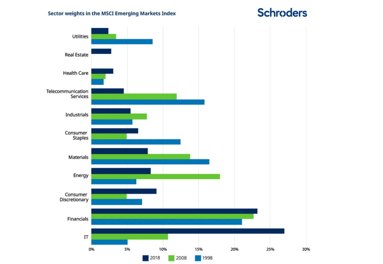 Pero, ¿por qué se modifican los índices? Existen varios factores y el crecimiento estructural de una compañía es uno de ellos. En este sentido, las acciones de los mercados emergentes pueden tener un papel más importante que nunca para ayudar a los inversores a cumplir sus objetivos de rentabilidad.
