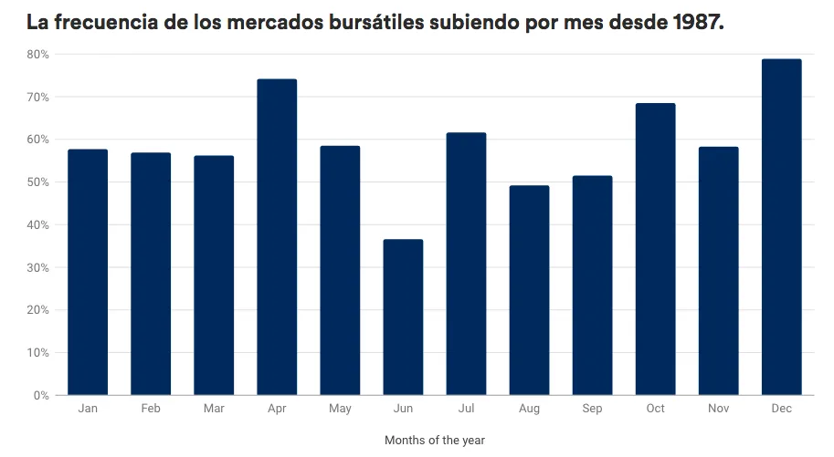 Con todo, esto fue solo el año pasado. Los datos en el largo plazo reflejan un patrón. De hecho, los análisis llevados a cabo por nuestros especialistas han determinado que los mercados han aumentado en un 79% todos los diciembre desde 1987.