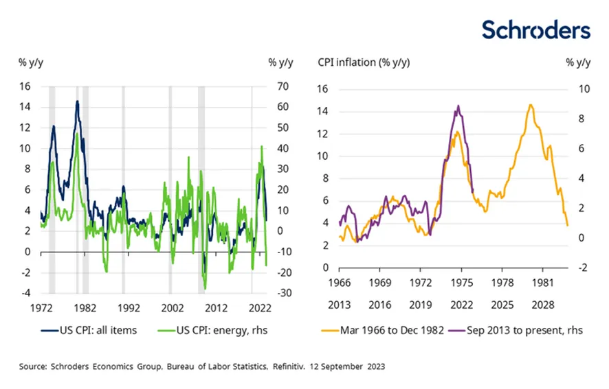 Hace poco más de un año, la tasa anual de inflación del IPC estadounidense se situaba en torno al 9%, el nivel más alto en cuatro décadas. Hoy, apenas supera el 3%. Este brusco cambio de tendencia se debe en gran medida a la corrección de la subida de los precios de la energía del año pasado. Pero los recortes de producción de la OPEP+ han hecho que los precios del petróleo suban un 20% en los últimos tres meses, con el crudo Brent de nuevo por encima de los 90 dólares por barril por primera vez desde noviembre de 2022. Esto contrasta totalmente con el verano pasado, cuando los temores de recesión hicieron caer los precios un 20% en el mismo periodo.