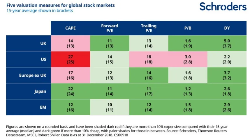 Dicho esto, ¿qué nivel de beneficios podemos esperar para los próximos 12 meses? Las acciones de Estados Unidos, Reino Unido, Europa y mercados emergentes se encuentran en sus niveles más baratos desde hace seis años.