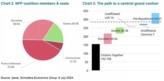 Con un alto grado de incertidumbre ya reflejado en los bonos del Estado francés de cara a la segunda vuelta de las elecciones, el resultado ha supuesto un alivio inmediato. La atención se centra ahora en el alcance de la coalición de izquierdas y, siendo realistas, en la incapacidad de un Gobierno minoritario del NPF para cumplir sus amplias promesas fiscales.