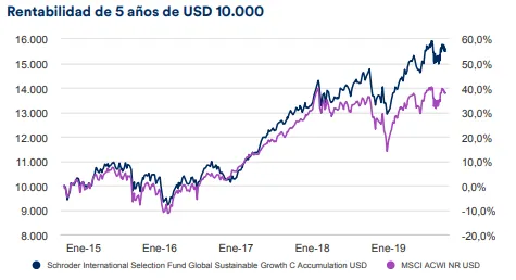 Ejemplo de ello es el Schroder ISF* Global Sustainable Growth, un fondo de renta variable global cuyo objetivo es batir a su índice de referencia (MSCI ACWI NR USD).