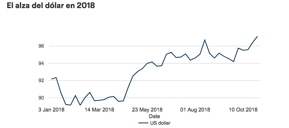 El dólar se encuentra en su punto más alto en este 2018 y ha aumentado de forma considerable en octubre. El motivo es que esta moneda sirve de refugio para los inversores.