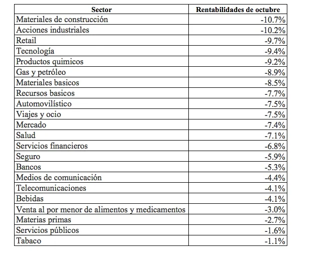 Los llamados sectores de cíclicos, como la tecnología, han sufrido pérdidas. Además, la construcción, los materiales y los recursos básicos han caído hasta niveles de dos dígitos, siendo de los más afectados.