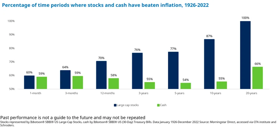 - La probabilidad de que los ahorros en efectivo superen a la inflación ha sido de aproximadamente 60:40 en la mayoría de los periodos.