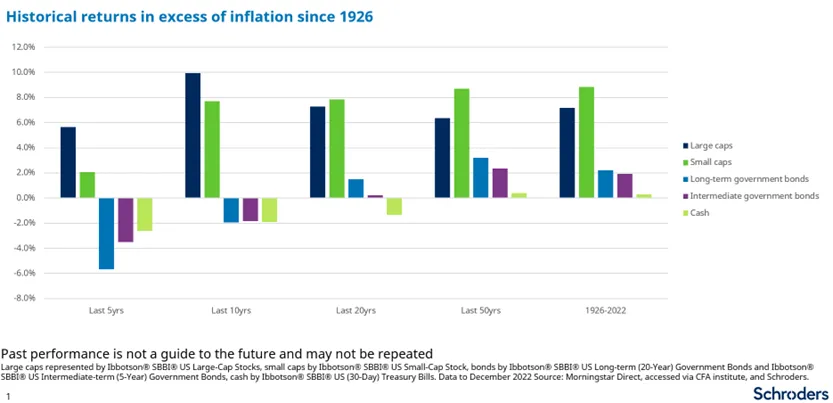 Aunque los datos históricos a largo plazo sugieren claramente que las acciones tienen más posibilidades de superar la inflación que otras inversiones, también son volátiles. Por tanto, los inversores que opten por la renta variable en lugar del efectivo deben estar preparados para un viaje lleno de baches.