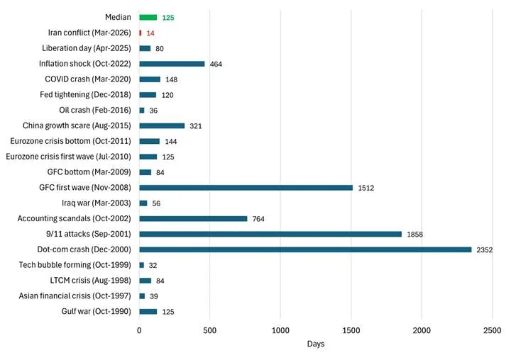 Días naturales que tardó el S&P 500 en recuperarse por completo de una caída del 10%