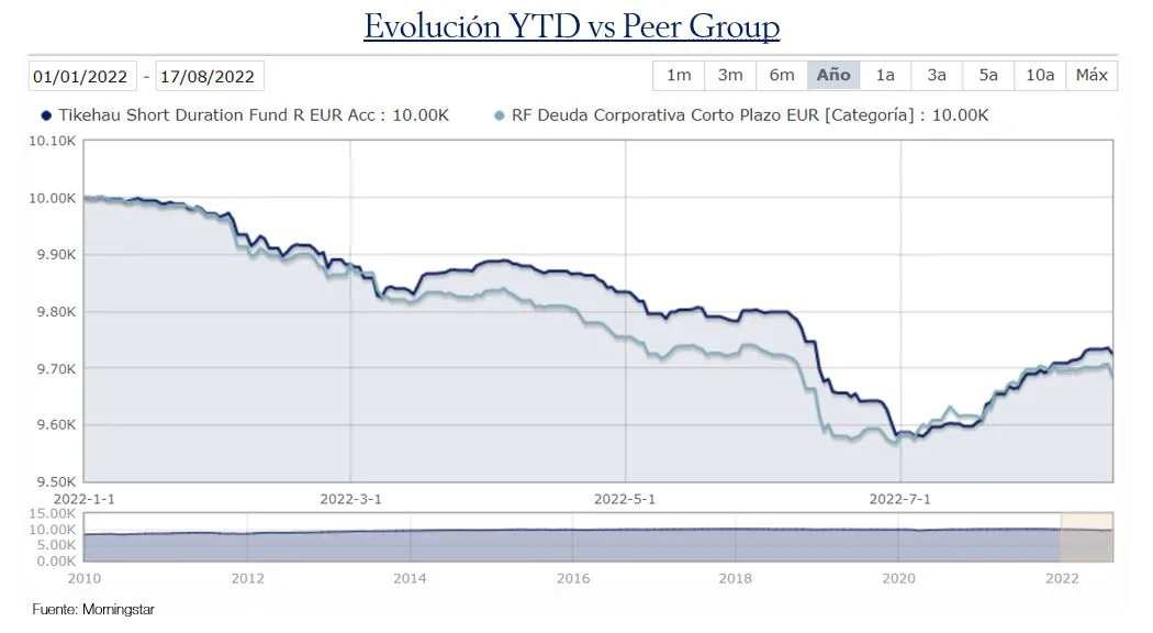 Durante el mes de julio el fondo obtuvo una rentabilidad positiva, aunque inferior a la de los índices €IG 1-3a y €HY 1-3a, en gran medida por una por una menor sensibilidad frente a los movimientos en los tipos y los spreads. En ese contexto macroeconómico, mantenemos nuestra prudencia frente a la acción de los bancos centrales. Bajo nuestro punto de vista, los mercados son muy optimistas respecto al nivel final de los tipos de interés y al timing de las primeras bajadas de tipos.