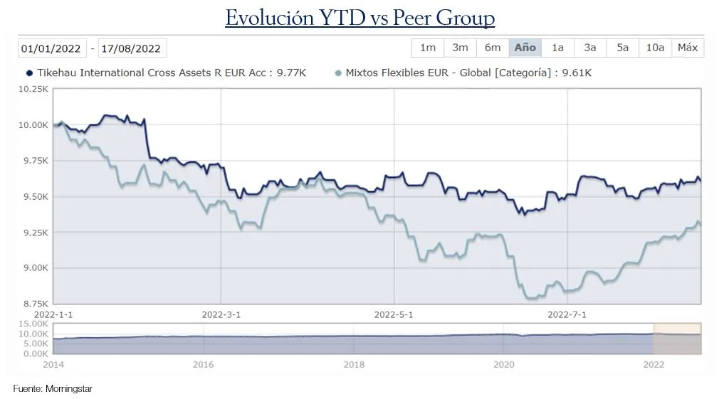 En la actualidad, el fondo cuenta con una exposición neta a renta variable del 23.6% (62.8% bruta) y una exposición a renta fija del 9.5% con una duración muy corta. Gracias a su flexibilidad en la gestión de la exposición, el fondo pierde un -3.28% en 2022 manteniendo una volatilidad histórica entre el 4-6.5%.