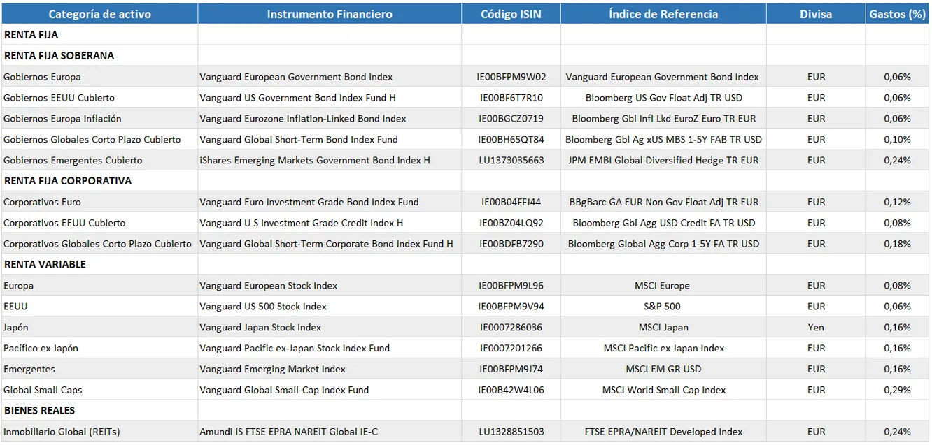 - Además de Renta fija y Renta Variable, también incluyen Bienes Reales (Oro y sector inmobiliario)