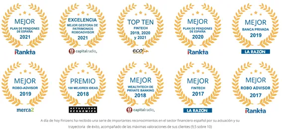 Finizens es un gestor automatizado español especializado en gestión pasiva, actualmente cuenta con más de14.000 clientes. Ofrece carteras de inversión globalmente diversificadas compuestas por algunos de los mejores fondos indexados de algunas de las gestoras más reconocidas del mundo como Vanguard, Blackrock y Amundi; optimizadas para el perfil de riesgo de cada cliente y con costes un 85% menores que los fondos tradicionales.