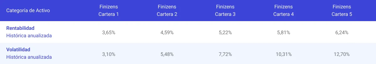 Finizens es un gestor automatizado español especializado en gestión indexada, actualmente cuenta con más de 18.000 clientes. Ofrece carteras de inversión globalmente diversificadas compuestas por algunos de los mejores fondos indexados de algunas de las gestoras más reconocidas del mundo como Vanguard, Blackrock y Amundi; optimizadas para el perfil de riesgo de cada cliente y con costes un 85% menores que los fondos tradicionales.