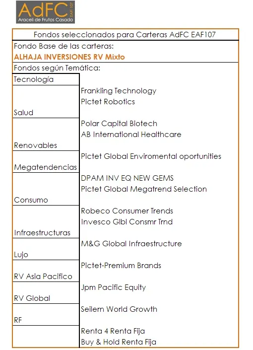 A continuación se describe la cartera de fondos que la EAF tiene recomendada para los clientes y en qué se basan nuestras recomendaciones :