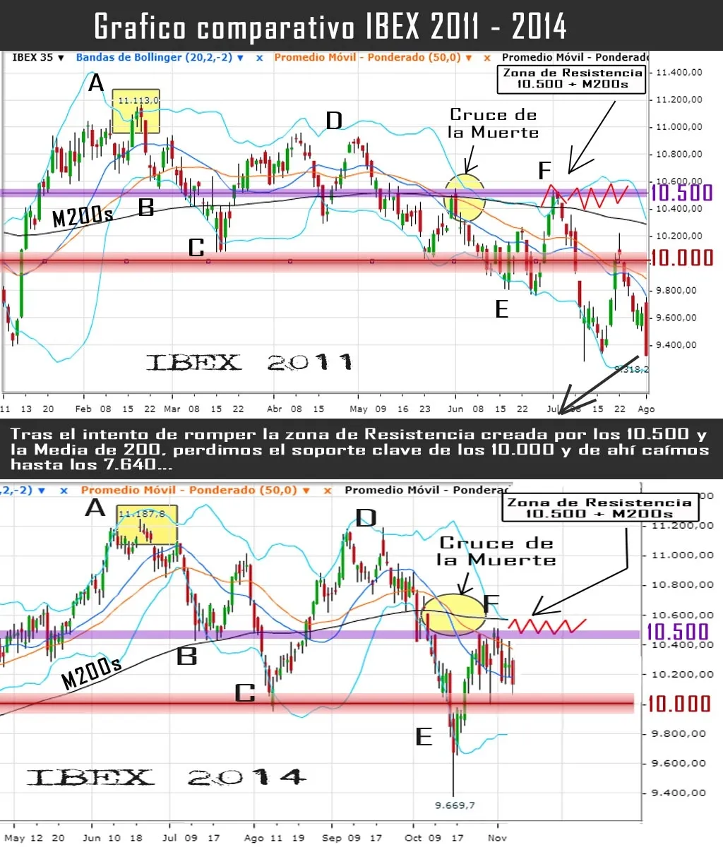 Llevo tiempo con la mosca detrás de la oreja cada vez que miro los gráficos del ?#? Ibex? y escucho las noticias. Una especie de dejavú. Este fin de semana he encontrado la razón. Y la verdad, creo que el ?#? gráfico? habla por sí sólo. Prometo artículo completo hoy o mañana, pero para ir abriendo boca os dejo un gráfico que he realizado. Espero que os sea útil y si tenéis alguna duda, como siempre, aquí estoy para lo que haga falta. (Gráfica comparativa realizada por Jose I. Ros, Profesor de Bolsa http://ibolution.blogspot.com.es/p/contacto.html#contacto )