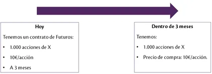 De esta forma a la fecha de vencimiento del contrato, compraremos las acciones de la empresa X, al precio establecido en el contrato de futuros, y no al precio de mercado que haya en ese momento.