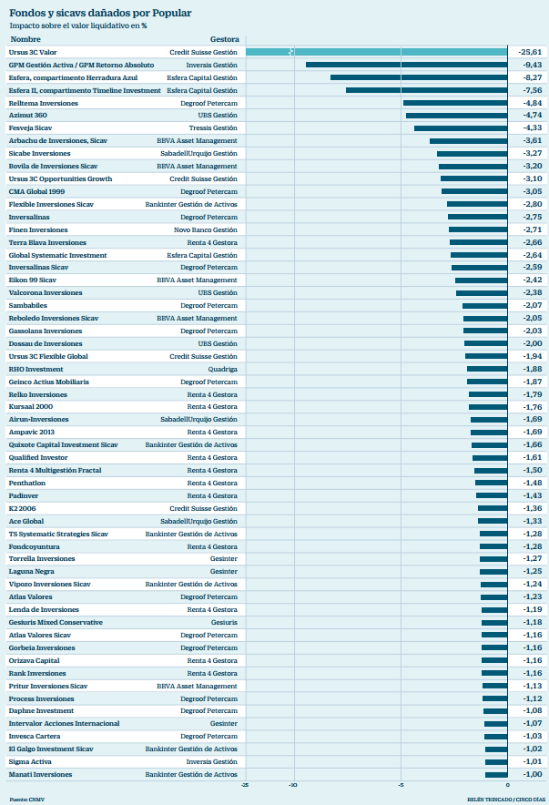 Empiezan a aflorar, posiblemente no por gusto sino por obligaciones legales de informar a la CNMV la larga lista de fondos y SICAV afectados por la caída del banco Popular.