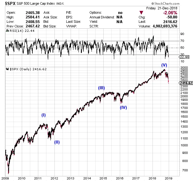 En mi opinión considero bastante probable que 2019 sea un año durante el cual veamos un suelo importante en los mercados, que al igual que en el caso de los techos importantes tampoco se formará de forma inmediata, pero hasta que llegue vamos a ver caras de dolor en muchos inversores que se dedican a no hacer nada por evitarlo. Esperemos que ese dolor sea al menos provechoso para el inversor que sepa mejor tomar medidas.