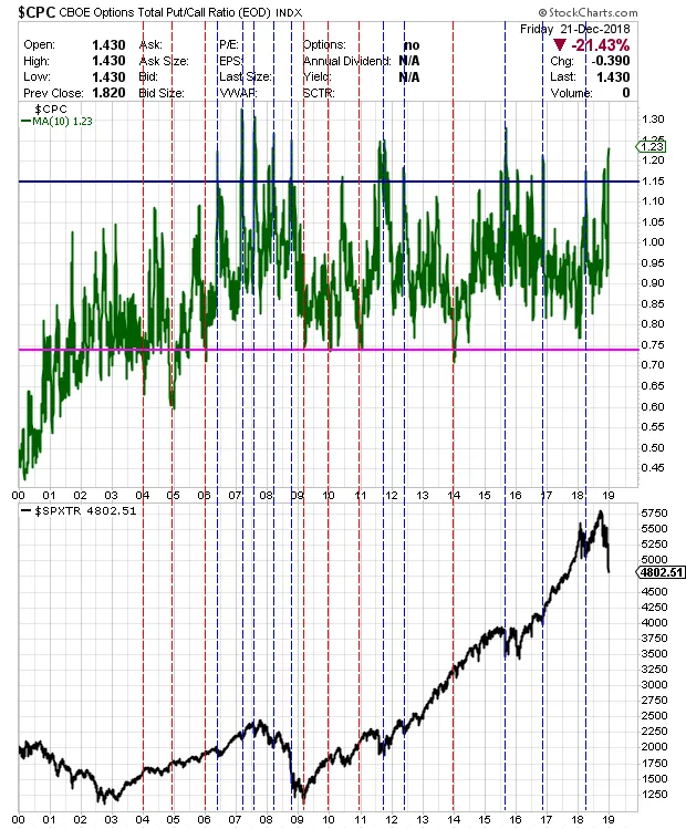 Indicadores de más corto plazo como el ratio put/call también reflejan miedo.