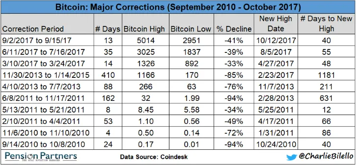 La palabra burbuja ha perseguido al bitcoin desde su creación y a día de hoy la escuchamos a diario. Las principales caídas del bitcoin desde que salió se pueden ver en la siguiente tabla.