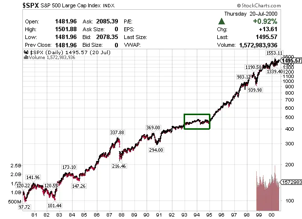 A mediados de febrero comentaba la situación del mercado y decía que era la última oportunidad para los alcistas para evitar un mercado bajista que empezaría si se terminaba rompiendo ese importante soporte de los 1800 en el SP500 y desde entonces el mercado ha rebotado con mucha fuerza recuperando casi todo lo perdido y a poco de los máximos históricos en el SP500. Como todavía no hemos conseguido romper el lateral, podemos continuar con la duda de si desembocará en un techo como el producido en 2000 o 2008: