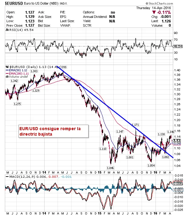 El Euro/Dolar consigue romper la directriz bajista: