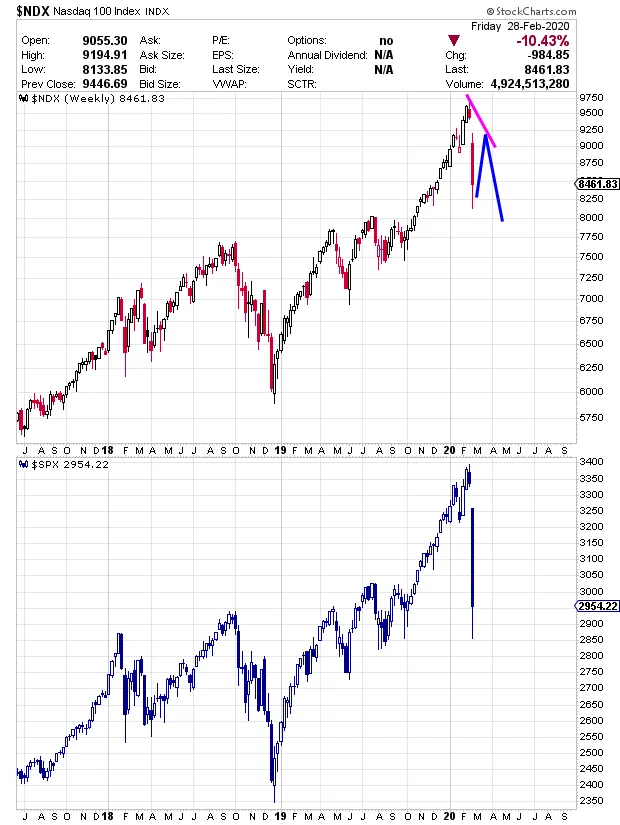 En resumen las caídas no han llegado en cualquier momento técnico sino en momento de grandes resistencias, el coronavirus ha sido excusa perfecta para vender en avalancha y debido a la dificultad par saber hasta donde puede llegar el miedo y todo lo que se puede llegar a paralizar a día de hoy no podemos determinar si se va a recuperar en V y todo se va a quedar en un susto semanal o la economía global se va a paralizar hasta el punto de entrar en recesión. Eso lo iremos viendo según vayan apareciendo nuevos datos.