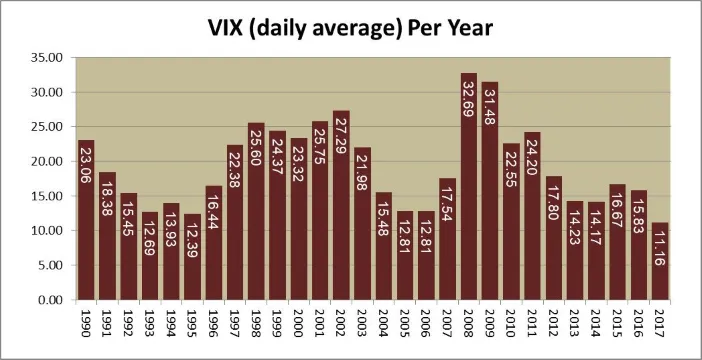 El promedio histórico de volatilidad es el mas bajo de más de 25 años aunque eso no es en si mismo motivo de que el mercado caiga.