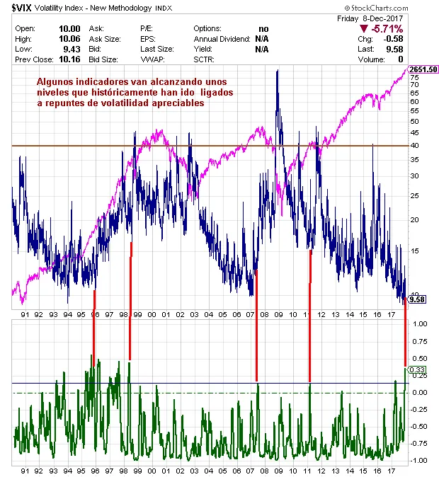 Algunos indicadores están en niveles en los cuales en anteriores ocasiones se han producido importantes repuntes de volatilidad.