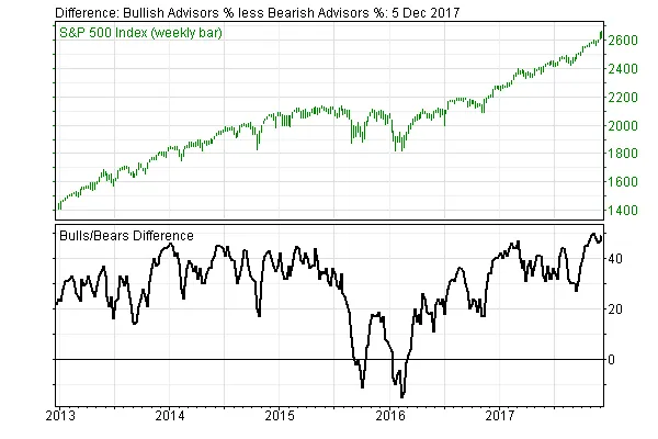 El sentimiento del mercado según investors Intelligence lleva unas cuantas semanas en niveles bastante extremos aunque ya lo hemos visto antes.