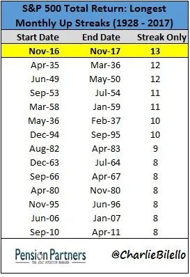 Estamos batiendo el record de numero de meses alcistas consecutivos en algunos índices.