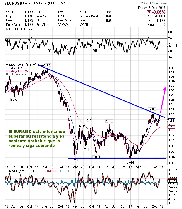 El Euro/dollar parece que se ha encontrado con resistencias apreciables pero con probabilidades de romperlas al alza. Esto favorece a wall St
