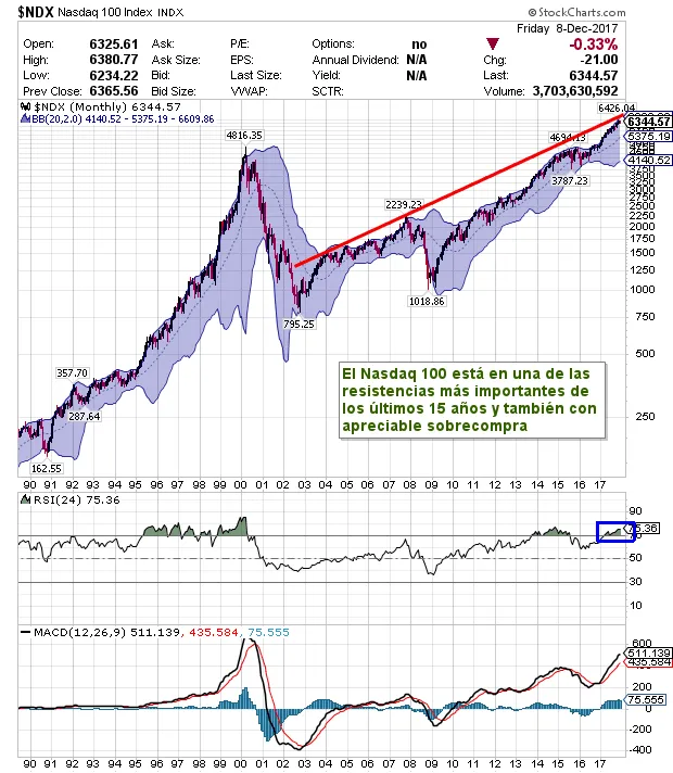 El Nasdaq 100 también se está encontrando con otra resistencia histórica y con importante sobrecompra.