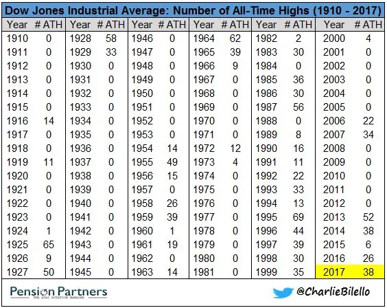 Es cierto que después de 9 años consecutivos de subidas igualando así la anterior mejor racha de la historia de wall St aunque con una revalorización bastante mas reducida y dando por asumido que los records históticos de años alcistas se pueden superar como en tantas otras ocasiones, también vamos contemplando un 2018 con muchas mas elevadas probabilidades de agotamiento del ciclo alcista nacido en 2009