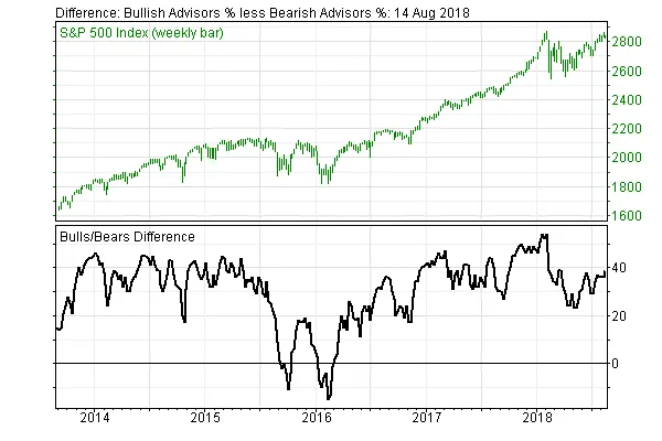 El sentimiento de mercado según investors intelligence no está en niveles extremos.