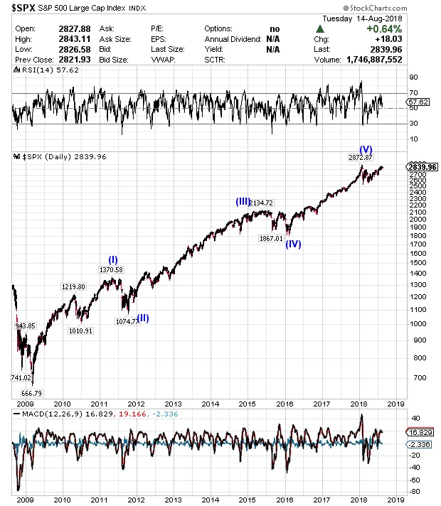 Podríamos seguir todavía en la formación de la onda V del ciclo de Elliott.
